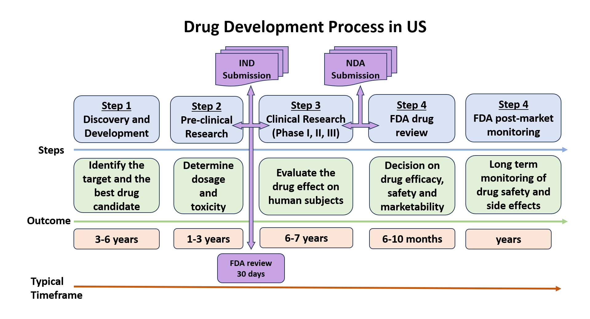 A typical timeline to prepare (write) an IND application is 3-4 months (~180 documents, ~1500 pages). Participation in a pre-IND meeting with the FDA authority and presenting a complete documentation and compelling safety data is highly recommended.